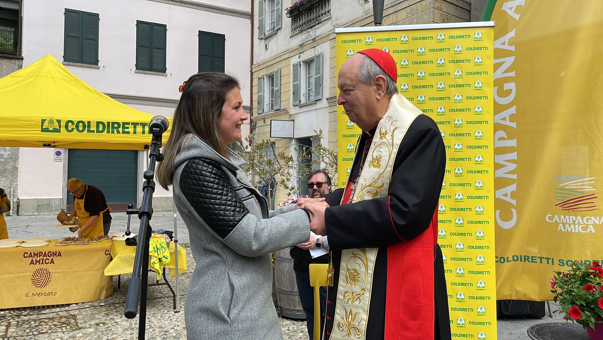 Ad accogliere il cardinale Cantoni è stato il presidente di Coldiretti Sondrio, Sandro Bambini, che al termine della preghiera ha omaggiato il vescovo con un cesto di prodotti locali. Sul palco allestito per l’occasione anche don Gianpaolo Romano e don Andrea Del Giorgio, rispettivamente responsabile e viceresponsabile del Servizio alla pastorale sociale, del lavoro e della custodia del creato della Diocesi di Como. Un ampio approfondimento sarà pubblicato sul prossimo numero de “Il Settimanale”.