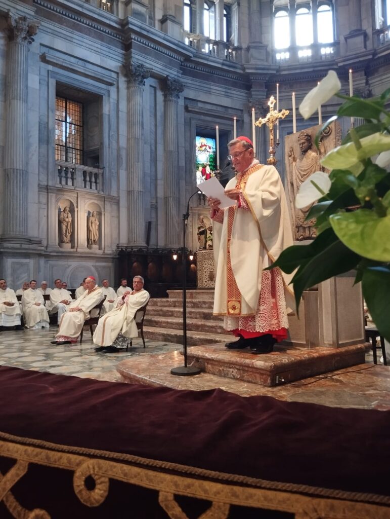 «Il brano del Vangelo che abbiamo ascoltato nella Solennità di Sant’Abbondio – ha sottolineato il cardinale Grech -, ci parla di questo: di uno stile che Gesù propone ai suoi discepoli. Uno stile che Sant’Abbondio, come pastore missionario, ha vissuto e che anche noi oggi siamo chiamati ad incarnare per essere una Chiesa missionaria capace ancora oggi di annunciare il Vangelo di Gesù in una società che purtroppo ha tanti segni religiosi ma ha perso il sapore del Vangelo, in un contesto dove l’uomo, inclusi noi cristiani così detti praticanti, ha lo spazio interiore “ammobiliato» da parte di tanti oggetti e di immagini che letteralmente non lasciano più spazio per riflettere e per conseguenza molte volte soffre il vuoto! Qual è allora lo stile che Gesù indica ai suoi discepoli? Ci siamo soffermati su uno stile sinodale guardando alla vita delle nostre comunità e al percorso sinodale fatto, pensando alle fatiche dell’impegno pastorale, forse anche alla frustrazione di vedere che a volte i nostri sforzi sembrano non avere successo. Gesù ci invita ad andare da lui per trovare ristoro e riposo, per lasciarci indicare da lui la via da seguire e lo stile da assumere. E il Signore ci indica la via della mitezza e della piccolezza».